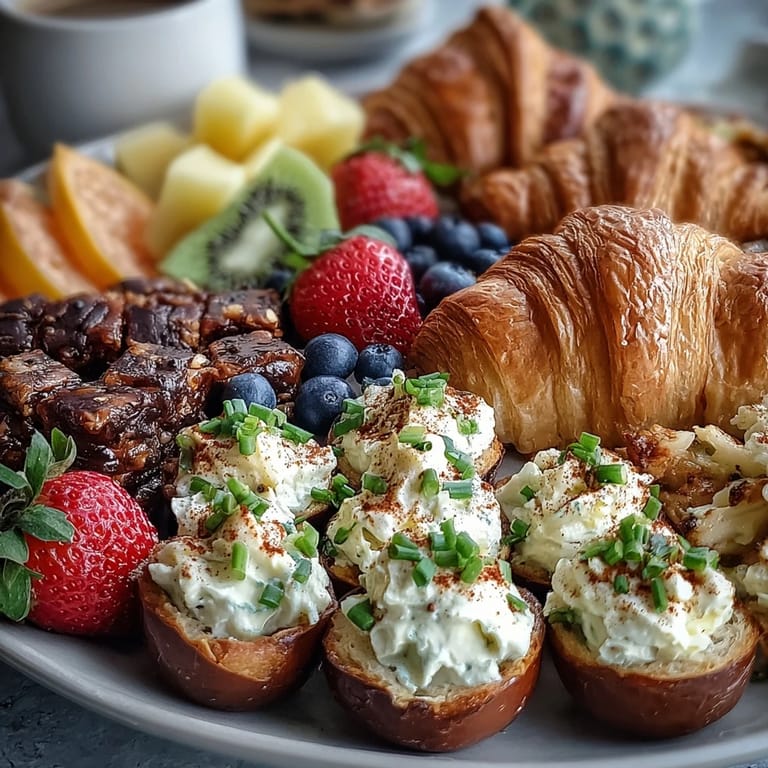 Save The sound of laughter always fills my kitchen when I bring out the Easter brunch board—it&apost;s become a small tradition that started on a whim. Last year, I decided to assemble a spread instead of a formal meal and was amazed at how everyone gravitated toward the colors and textures. The aroma of fresh pastries mingling with the scent of sweet fruit makes it irresistible, and deviled eggs add just enough savory balance. There&apost;s something joyful about the messiness: hands reaching, crumbs tumbling, and berry juice staining napkins. Each time I make this, I notice new favorite combinations and playful debates over which fruit goes best with honey.