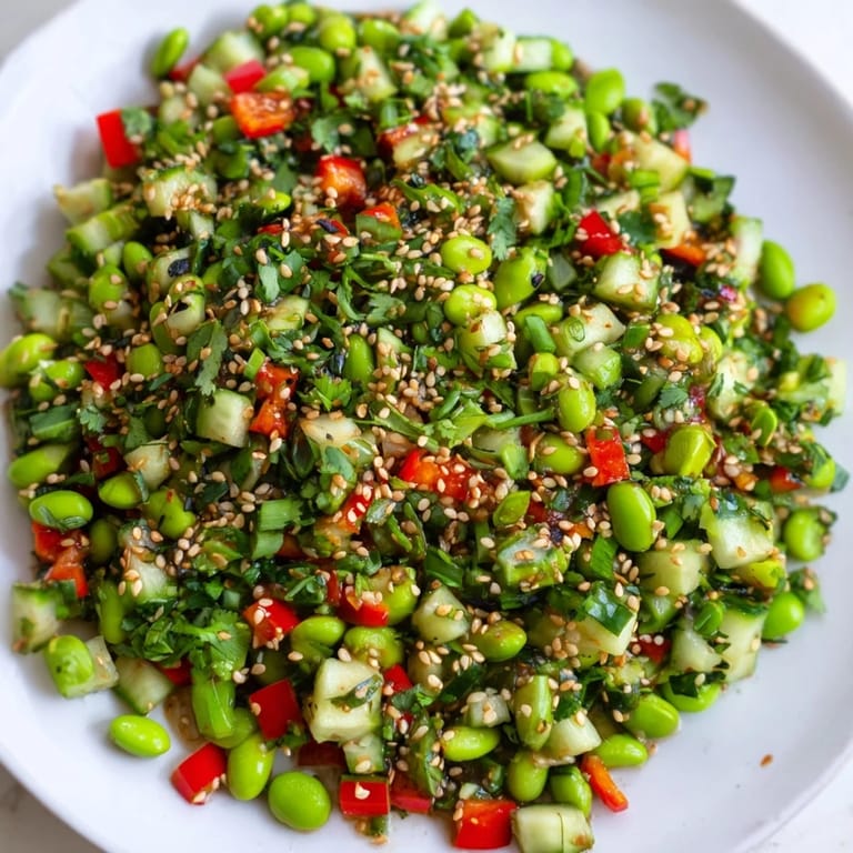 Save I discovered this salad on a sweltering afternoon when my farmer's market haul included more edamame than I knew what to do with. Rather than steaming them plain, I tossed them into a bowl with cucumber scraps and whipped up a sesame dressing on impulse. The combination was so bright and satisfying that it became my go-to when I needed something that felt both nourishing and effortless.