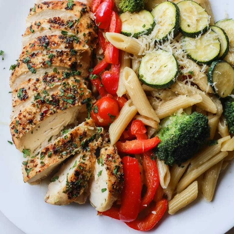 Save The smell of rosemary and garlic hitting hot olive oil still takes me back to my tiny first apartment, where I discovered that roasting chicken and vegetables together was basically magic. I used to cook everything separately because that is what recipes said to do, until one busy Tuesday night I threw everything on one sheet pan out of sheer laziness. The vegetables caught all those herb-infused chicken juices and suddenly I was eating like someone who actually knew what they were doing. Now this pasta dish is my go-to when I want something that looks impressive but secretly did almost all the work itself.