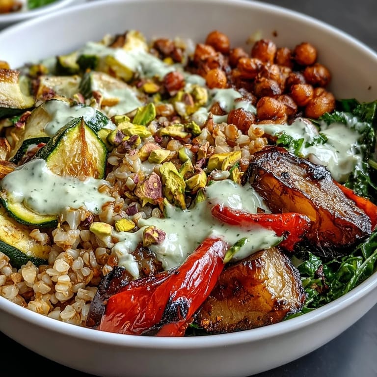Save There's something about assembling a Mediterranean Buddha bowl that feels less like cooking and more like painting with vegetables. I discovered this particular combination on a Tuesday afternoon when my farmer's market haul was getting out of hand, and I needed something that would stretch through the week without boring me by Wednesday. The tahini dressing was the real revelation—that creamy, garlicky pour over warm bulgur and roasted eggplant transformed what could have been a sad desk lunch into something I actually looked forward to eating.