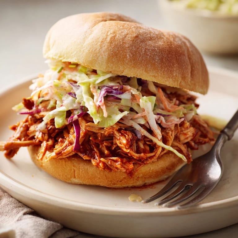 The pulled chicken keeps well in an airtight container in the fridge for up to three days, and the slaw stays crisp for about two days if stored separately. When you're ready to eat, reheat the chicken gently in a skillet or microwave with a splash of broth to keep it moist. The slaw is best served cold, so keep it chilled until you're ready to assemble. I don't recommend freezing the slaw, but the chicken freezes beautifully for up to two months if you want to make a double batch.