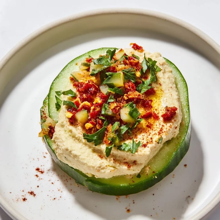 Save With minimal preparation and maximum taste, these Quick Hummus and Cucumber Bites are sure to become a favorite anytime you want a light, nutritious, and crowd-pleasing appetizer. Their versatility and ease make them a staple for your Mediterranean-inspired snack repertoire.