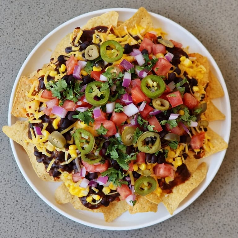 Save Crispy tortilla chips loaded with melted cheese, flavorful toppings, and served straight from the oven & perfect for a quick snack or casual dinner.