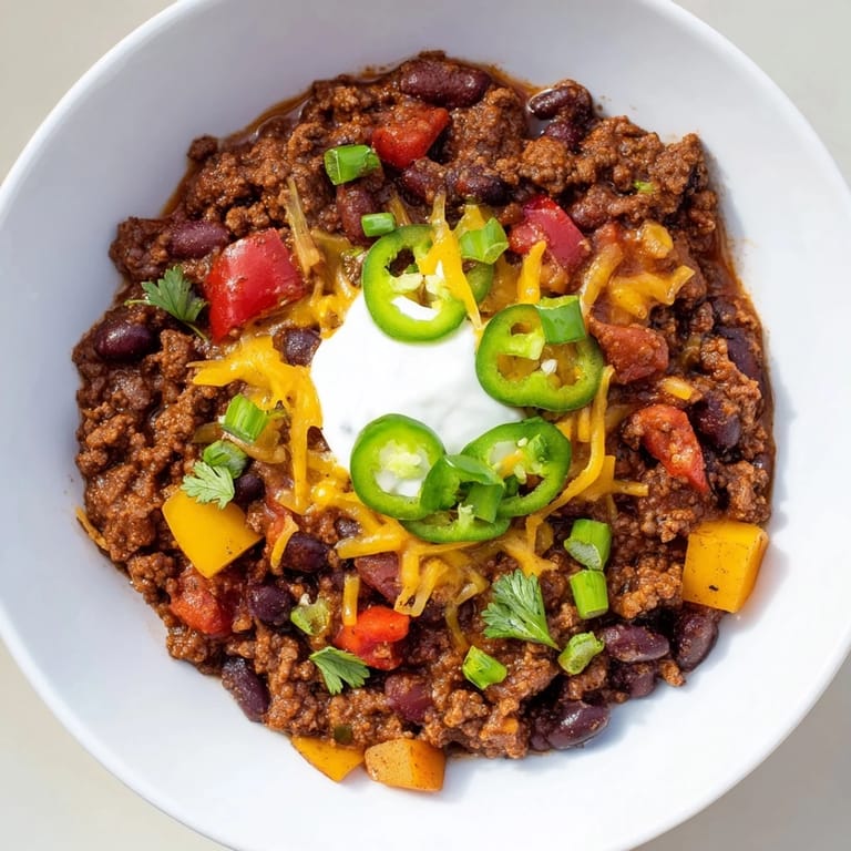 Save A hearty, flavorful chili packed with ground beef, beans, and warming spices perfect for a quick and comforting weeknight meal. Ready in under an hour!