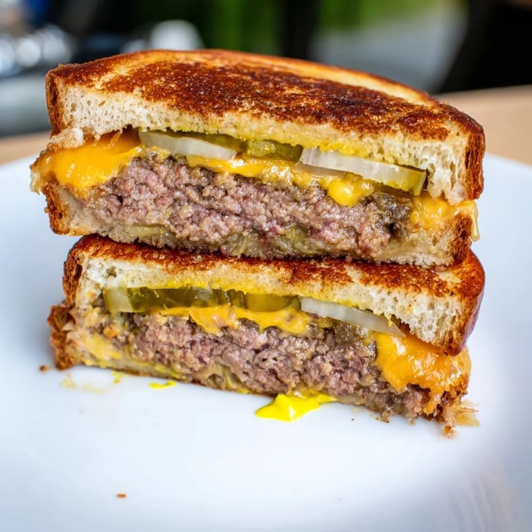 Save There's something about the sizzle of a smashed patty hitting hot metal that makes you pause mid-conversation. Years ago, I was standing in a friend's kitchen during a casual weeknight dinner, watching them flip between two cooking methods—one skillet for the burger, another for the sandwich—and suddenly it clicked: why not merge them? That first attempt was messier than I'd like to admit, with cheese escaping the sides and bread that browned too fast. But then came that perfect iteration, where everything aligned: the beef thin enough to cook through in minutes, the cheese melting at exactly the right moment, and golden bread framing it all. Now I find myself making this whenever someone needs convincing that comfort food can be elegant.