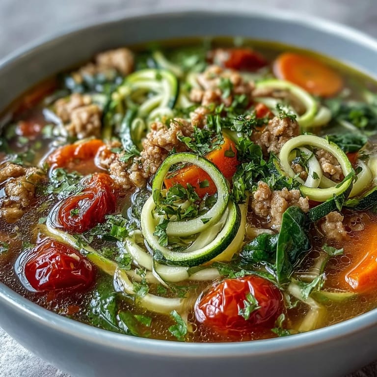 Save My kitchen smelled like celery and thyme on a Tuesday evening when I first threw together this soup, mostly because I had a tired fridge and an ambitious goal of eating lighter. Ground turkey was on sale, zucchini was taking up real estate, and I thought, why not spiral it into noodles instead of boiling pasta like usual? What emerged was this bright, honest bowl that tasted nothing like deprivation—it tasted like I'd actually figured something out.